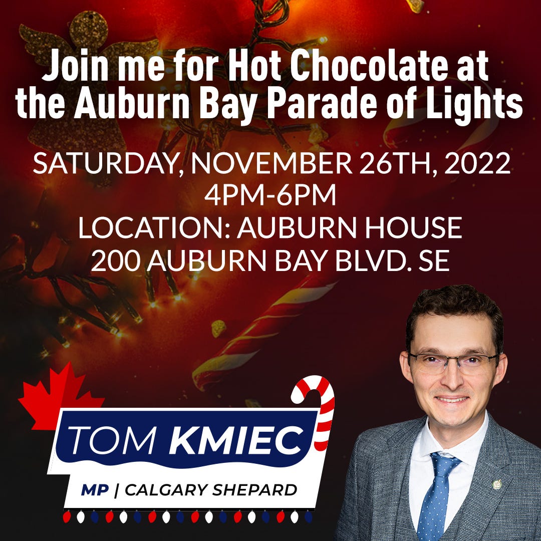 I look forward to seeing you all tomorrow at the Auburn Bay Parade of Lights. I’ll have a hot chocolate waiting for you. See you then.