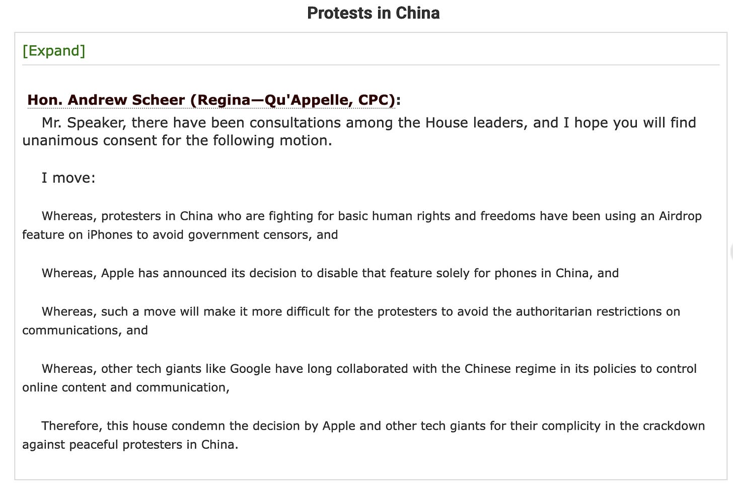 This week, conservatives passed a motion with unanimous support, condemning Apple and other tech giants for their part in helping the PRC muzzle the voices of peaceful protesters. Big Tech is seeming less and less an ally of free speech. A very troubling trend.